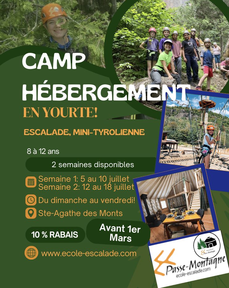 Passe-Montagne offre le camp d’escalade depuis plus de 30 ans.